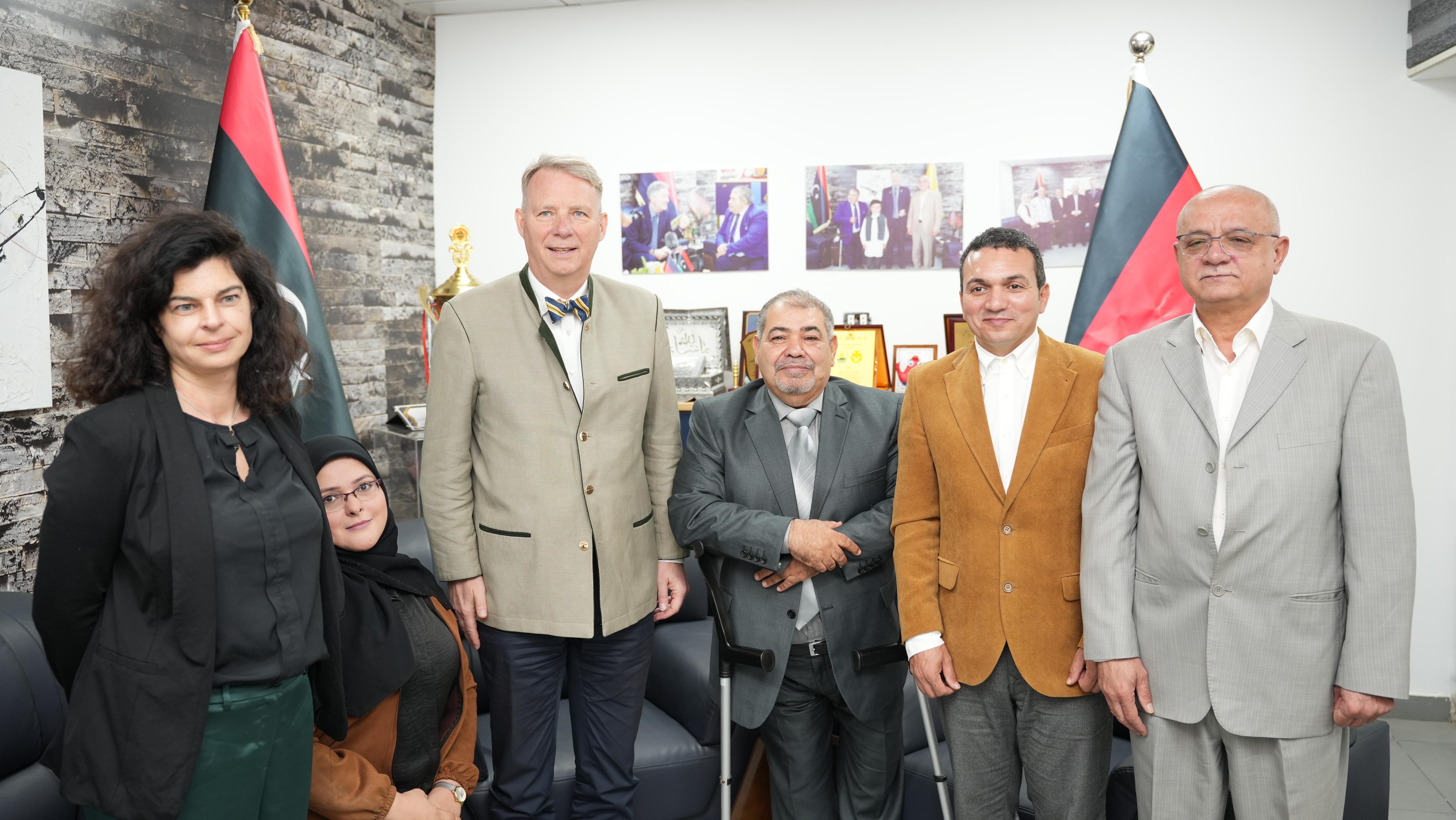 قام رئيس اللجنة البارالمبية الليبية بمنح القائم بالأعمال الألماني درع اللجنة تقديرًا لجهوده في دعم الرياضة البارالمبية.